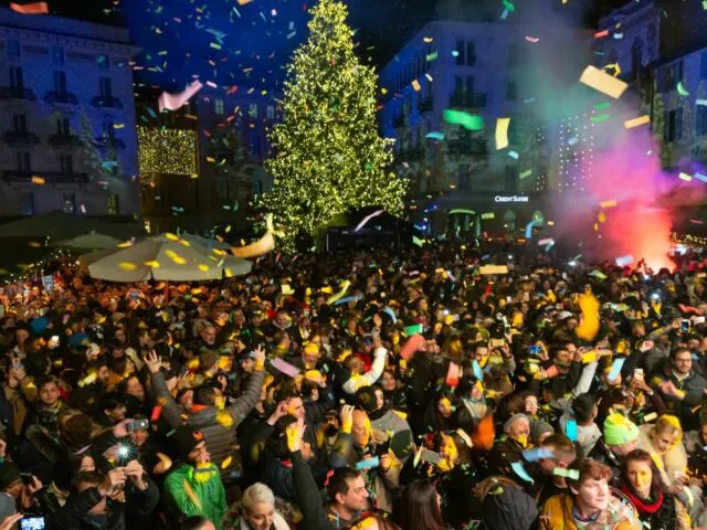 On 31 December, a festive toast beneath the big tree — music and celebrations to welcome the New Year. On 1 January, the traditional greeting with the city authorities at the Palazzo dei Congressi.